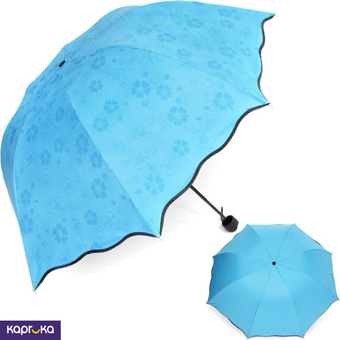 Magic Umbrella Changing Secret Blossoms Occur With Water Magic Print 3 Fold Umbrella Blue