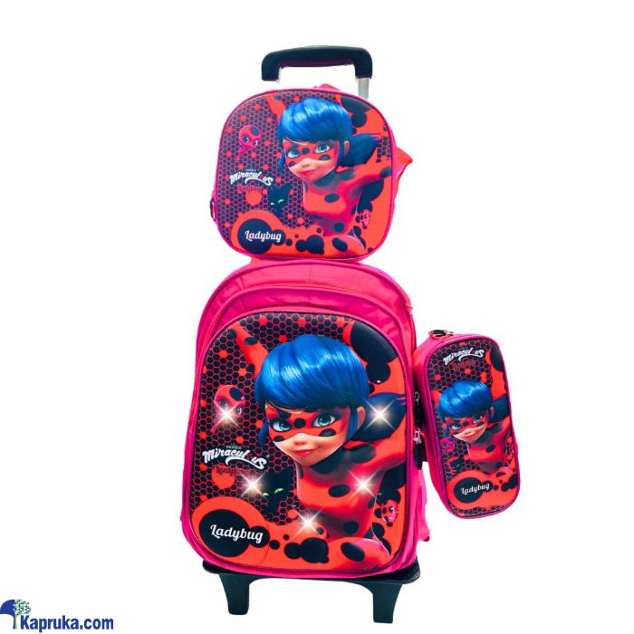 The 3D Trolley Bag features a vibrant 3D design that appeals to children, along with lights that enhance its visual appeal. It is designed to be both sturdy and stylish, suitable for school use and travel.