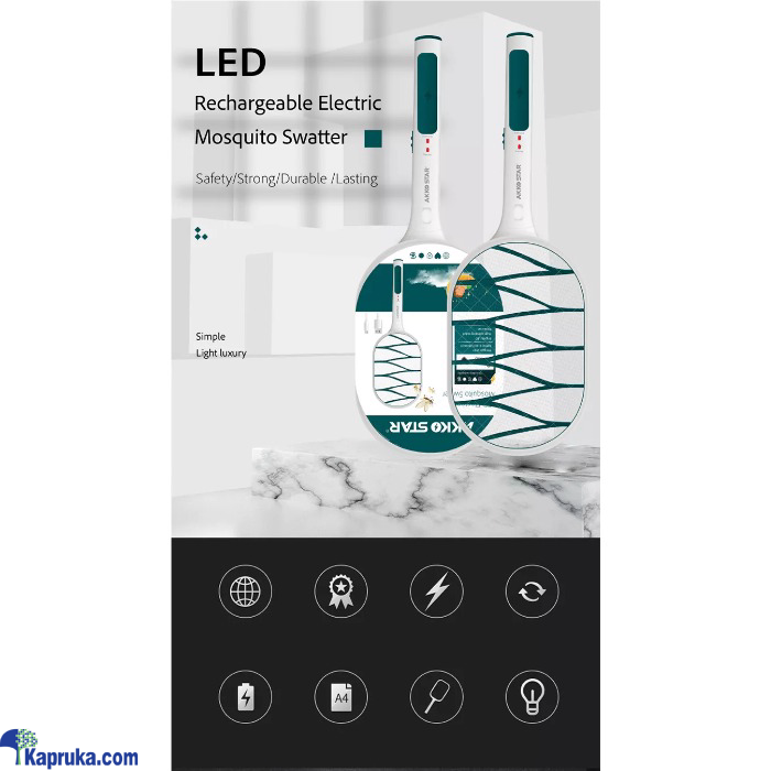 The Akko Star Electric Mosquito Swatter is rechargeable, making it convenient for repeated use without the need for replacing batteries.