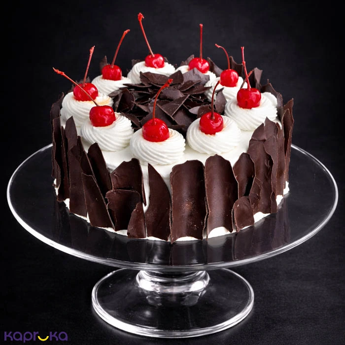 Savor the classic charm of this Black Forest Cake, featuring soft chocolate sponge layered with smooth cream and luscious, juicy cherries. Timeless and indulgent, each slice offers the perfect balance of rich chocolate and fruity sweetness, making it a perennial favorite for any celebration.