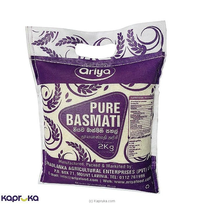 Ariya Pure Basmati Rice 2kg is a premium grade, carefully selected long-grain rice known for its naturally rich aroma, extra-long slender grains, and soft, fluffy texture after cooking. Sourced for purity and hygienically packed to preserve freshness, this basmati rice delivers a light, non-sticky consistency that is perfect for biryani, pulao, fried rice, and everyday family meals. Its delicate fragrance and superior grain quality enhance both festive dishes and daily cooking, ensuring consistent taste and excellent results every time. The convenient 2kg pack is ideal for households seeking authentic flavor, quality, and freshness in every serving.
