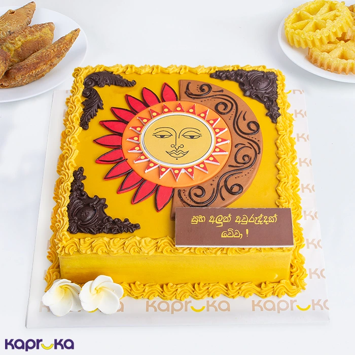 Step into the warmth of the village and celebrate the Sinhala and Tamil New Year with Gama Madulla Surya Rasa, a cake that embodies the true spirit of Avurudu. Inspired by the sun, which marks the changing of the year, this traditional creation mirrors the vibrant hues of a golden sunrise over the village. At its heart shines the sun, a sacred symbol of renewal and prosperity. The golden, red, and yellow tones reflect festive village decorations. Each bite of this soft ribbon-based cake, layered with vanilla cream and sweetened with sugar syrup, brings the warmth of home, just like a village hearth on a festive morning. Much like how villagers gather to watch the first rays of the New Year sun, this cake invites families to come together, share blessings, and savor the sweetness of a bright future. Enjoy Gama Madulla Surya Rasa, a delicious tribute to the age-old traditions of Avurudu.