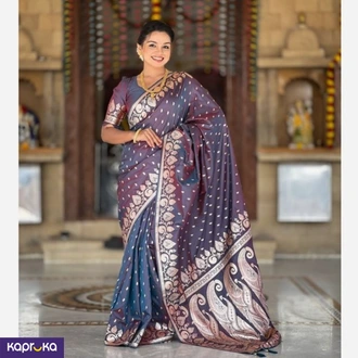 The Saree is made from Banarasi silk, which is known for its fine texture and luxurious appearance.