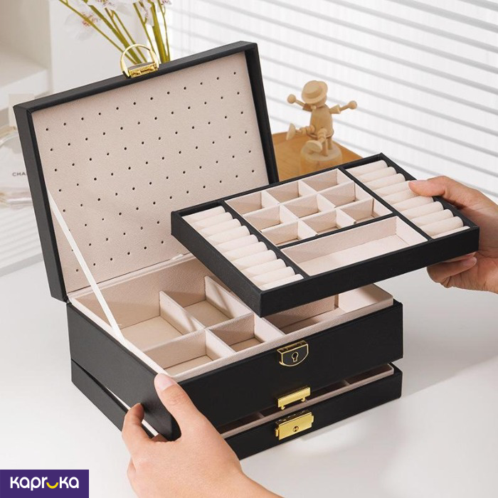 Keep your precious jewellery safe and organized with this elegant black jewellery storage box, available at Kapruka. Ideal for travel or home use, it's perfect for storing all your valuables.