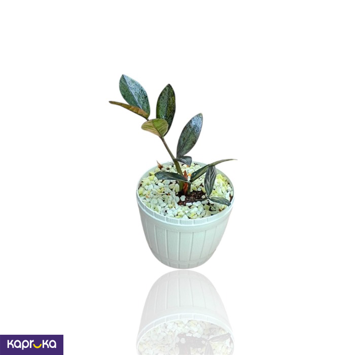 The Black ZZ Desk Plant is a variety of Zamioculcas zamiifolia, commonly known as the ZZ plant. It is known for its attractive, dark green leaves and its ability to thrive in low light conditions.