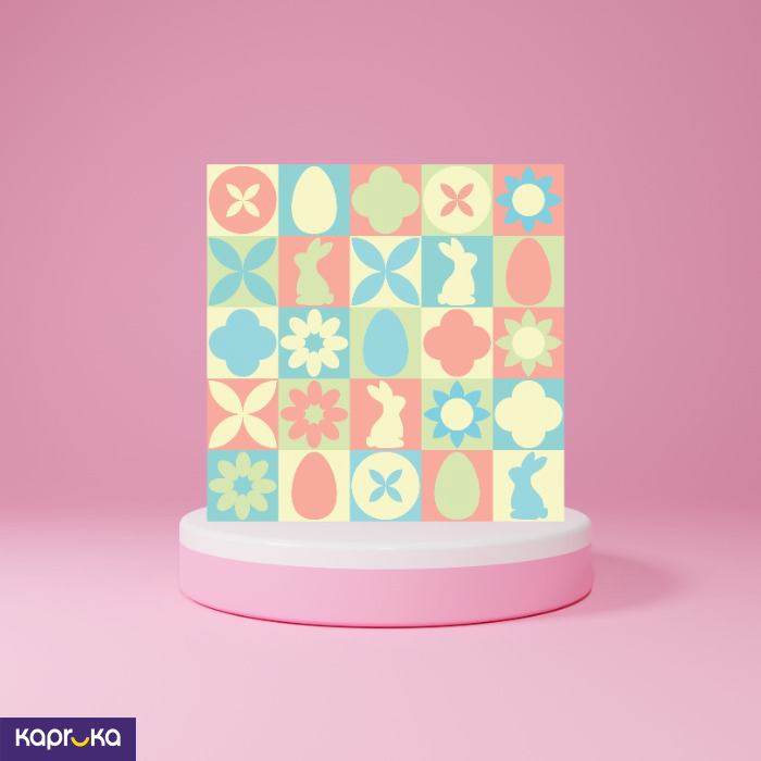 Inspired pastels don this greeting card with a fun print of bunnies and Easter eggs. This seamless abstract pattern will indeed invoke a playful touch to your celebration. Include a personalised note or take advantage of a pre-printed holiday greeting inside.