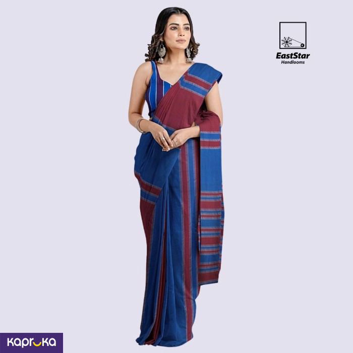 Experience the elegance of the EastStar Handlooms kc2213 saree. This deep blue maroon handloom cotton saree showcases traditional Sri Lankan craftsmanship, ideal for weddings, work, or evening events. The rich blue body with maroon stripe accents and a striking maroon-to-blue striped pallu adds timeless charm to your wardrobe. Pair it with oxidized silver jewelry for a classic look.