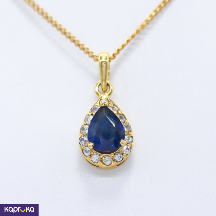 The chain of the Blue Sapphire Pendant is made of 9k gold, providing a durable and elegant finish suitable for everyday wear.