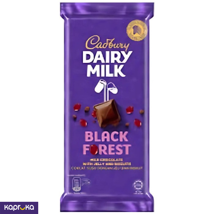 The Cadbury Black Forest milk Chocolate features a delicious blend of classic milk chocolate with pieces of real cherries and biscuits for a unique texture and taste.