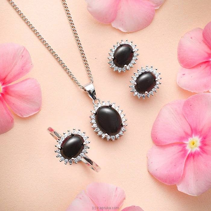 Chamathka Diana S925 Silver Onyx Full Set - Chamathka Jewelry