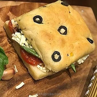 This Freshly made herbed tomato turns this unique sandwich into something special. The grilled freshly baked focaccia bread takes you to a new level with basil leaves, herbed tomato slices and mozzarella cheese.
