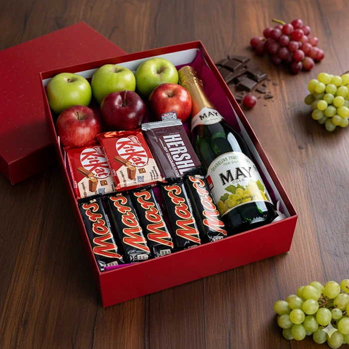 Chocolate Bliss New Year Gift With May Fruit Drink, Red Apples, Green Apples, Mars, Kit Kat And Hershey's Chocolates