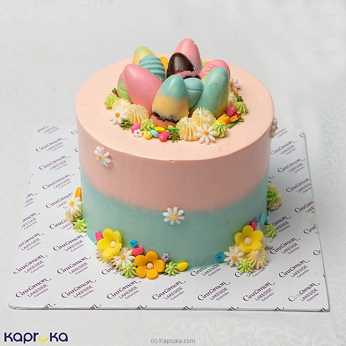 Celebrate the joy of Easter with the elegant Cinnamon Lakeside Easter Ribbon Cake from Cinnamon Lakeside Colombo. Crafted with soft, colorful layers of classic ribbon cake, this festive creation is beautifully finished with smooth butter icing and charming Easter-themed decorations. Perfectly blending tradition with seasonal cheer, it`s an ideal centerpiece to sweeten your Easter celebrations.