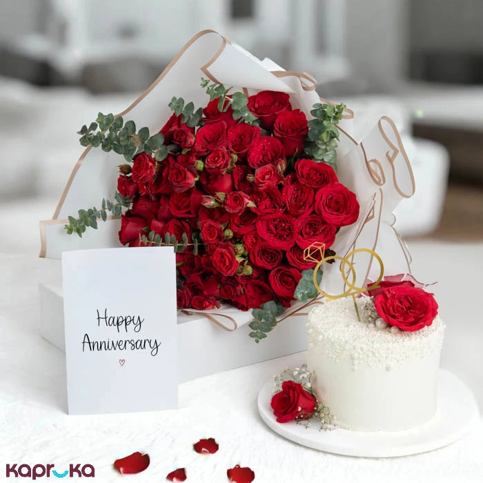 Celebrate your special moment with the Crimson Anniversary Love Combo, designed to express deep love and romance. Perfect for anniversaries or romantic surprises, this unique gift set brings together beautiful flowers and a delicious cake, creating a memorable surprise for your loved one. Available now at Kapruka and delivered anywhere in Sri Lanka.