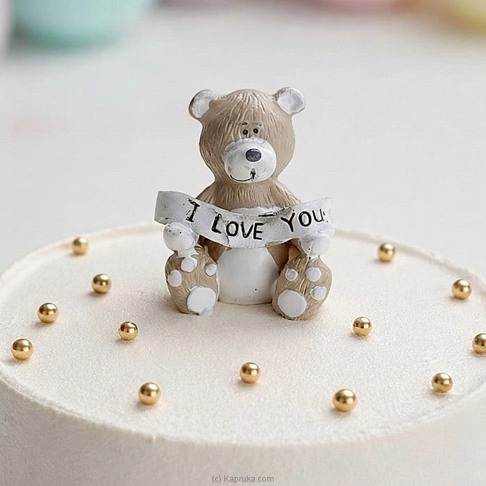 Add a touch of sweetness and romance to your celebration with this adorable Teddy Bear Cake Topper. Featuring a cute teddy holding a delicate ``I Love You`` banner, this charming piece instantly enhances the look of any cake. Designed with soft neutral tones and fine detailing, it beautifully complements both elegant and playful cake themes.