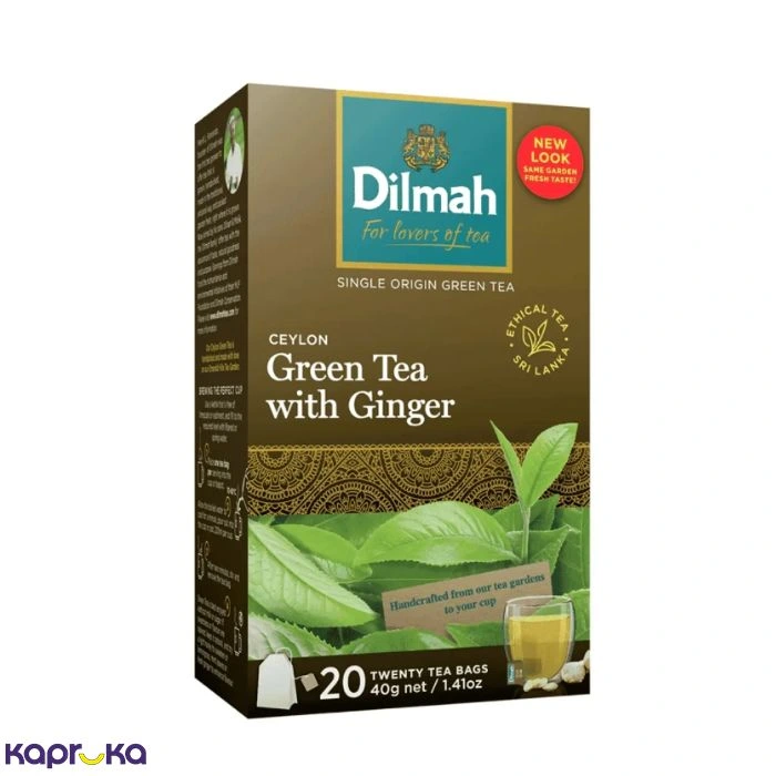 Dilmah Ceylon Green Tea with Ginger 20 Tea Bags (2g each) is a refreshing and invigorating blend that combines the light, delicate taste of pure Ceylon green tea with the warm, spicy notes of natural ginger. Carefully crafted using high-quality tea leaves, this infusion offers a smooth, aromatic brew that helps uplift the senses and provide a soothing experience. Perfect for enjoying at any time of the day, it delivers a balanced flavor with a gentle kick of spice. Conveniently packed in individually wrapped tea bags to preserve freshness and quality, Dilmah Ceylon Green Tea with Ginger is an ideal choice for a revitalizing and comforting beverage.