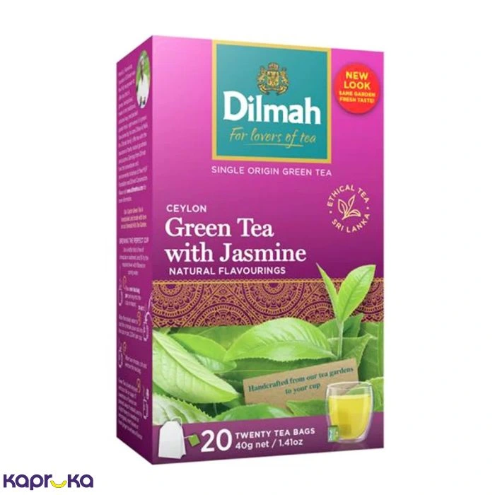 Dilmah Ceylon Green Tea with Jasmine 20 Tea Bags (2g each) is a delicately fragrant blend that combines the light, refreshing taste of pure Ceylon green tea with the soothing floral aroma of natural jasmine. Crafted from high-quality tea leaves, this infusion offers a smooth, elegant brew with a subtle sweetness and a calming finish, perfect for relaxing moments throughout the day. Enjoy it hot for a comforting experience or chilled for a refreshing iced tea. Conveniently packed in individually wrapped tea bags to preserve freshness and flavor, Dilmah Ceylon Green Tea with Jasmine is an ideal choice for those who appreciate a gentle, aromatic, and refreshing tea.