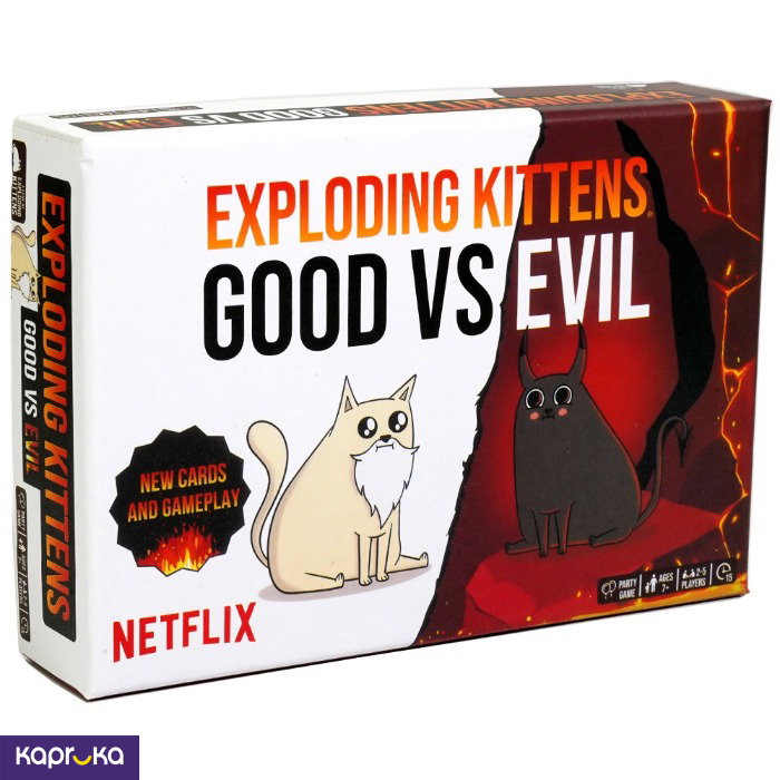 Exploding Kittens- Good vs Evil is recommended for players aged 7 and above, making it suitable for families and young players.