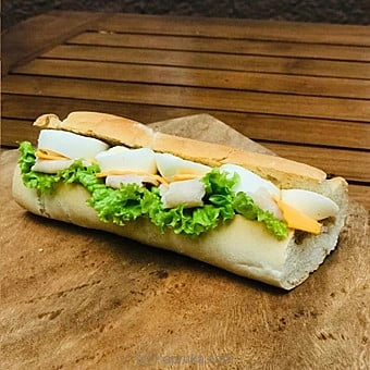 Hungry for lunch- look no further than this classic French-style baguette. This light and crispy crust with a soft interior baguette is loaded with egg, cold cut chicken ham and cheese is buttered with a touch of Dijon mustard.