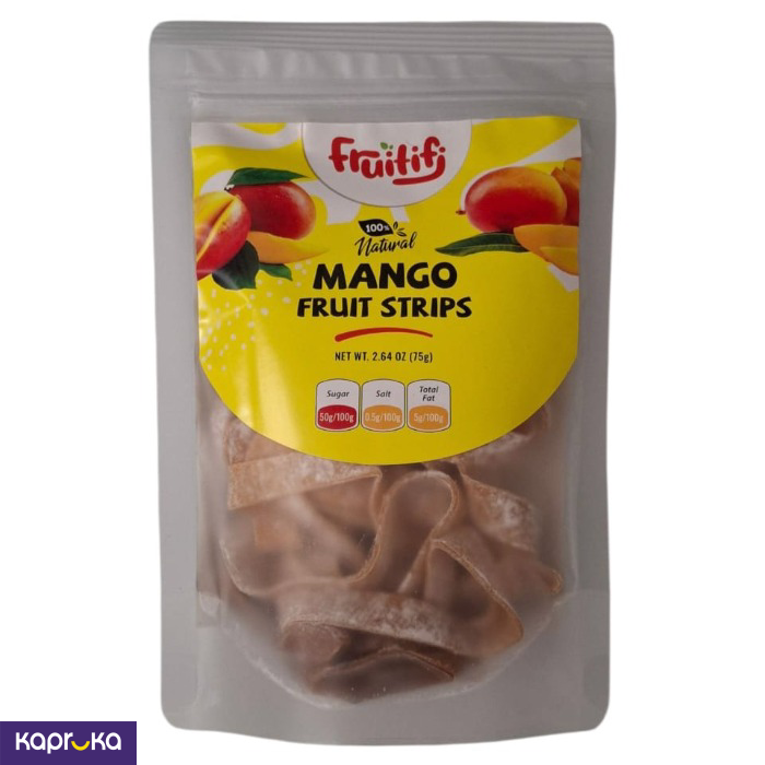 Fruitifi Mango Fruit Strips 75g are tasty and healthy snacks made for everyone to enjoy. Made from 100% natural mango, these strips pack the flavor of five times concentrated mango fruit. Perfect for busy lifestyles in Sri Lanka, these snacks are easy to carry and enjoy.