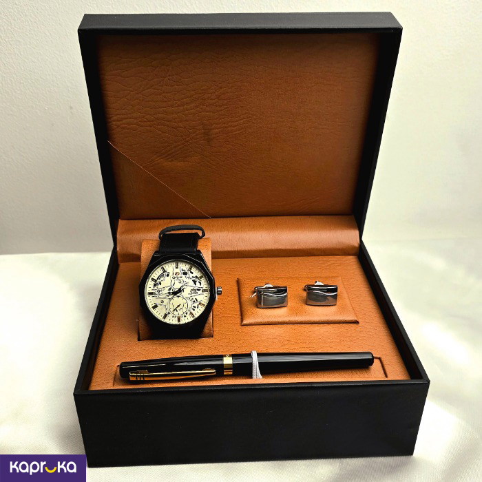 Watch: A sleek and stylish black watch, perfect for everyday wear or special occasions. The black color adds a touch of sophistication to any outfit.