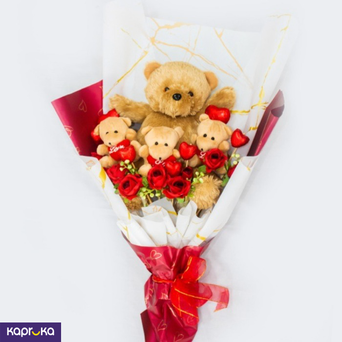 Important note: There may be slight color variations in teddies and flowers based on availability, making each bouquet unique.