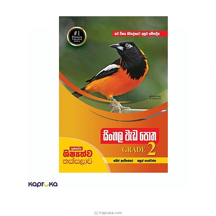The book includes educational content tailored for Grade 2 students, focusing on enhancing their Sinhala language skills and knowledge.