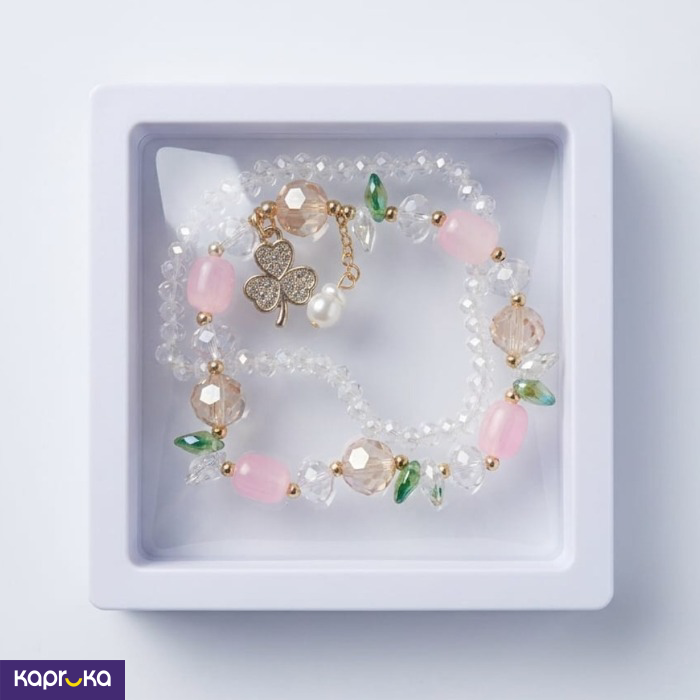 Handcrafted Charm Bracelet Set Elegant Three Leaf Clover And Pearl Accents In Pastel Tones - Shop with me - Bracelets
