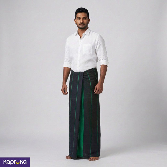 Homins Handloom Gents Sarong Angel Collection Black And Green