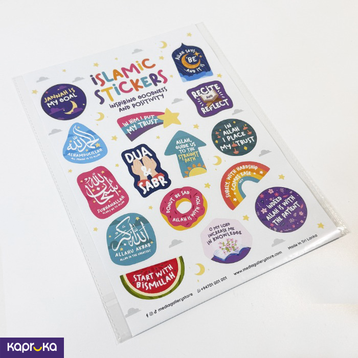 The Islamic Sticker Sheet 02 includes a variety of stickers themed around Islamic art and calligraphy, designed for both educational and decorative purposes.