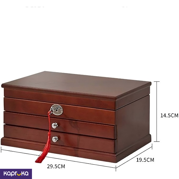 The Jewellery Wooden Box Organiser is crafted from high-quality wood, ensuring durability and a classic aesthetic appeal.
