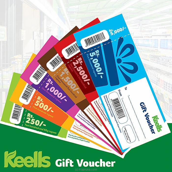 Keells gift vouchers can be used to purchase a wide range of products including groceries, fresh produce, meat, bakery items, and personal care products available at any Keells supermarket across Sri Lanka.