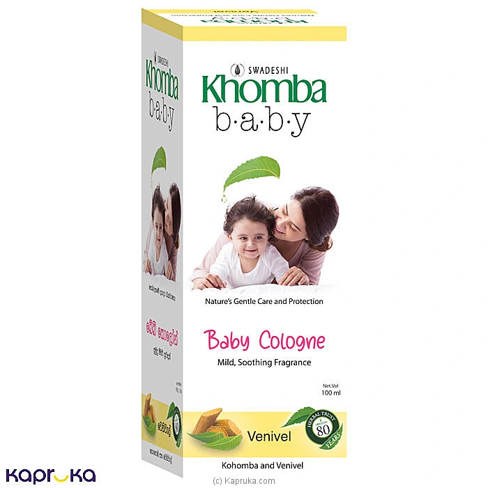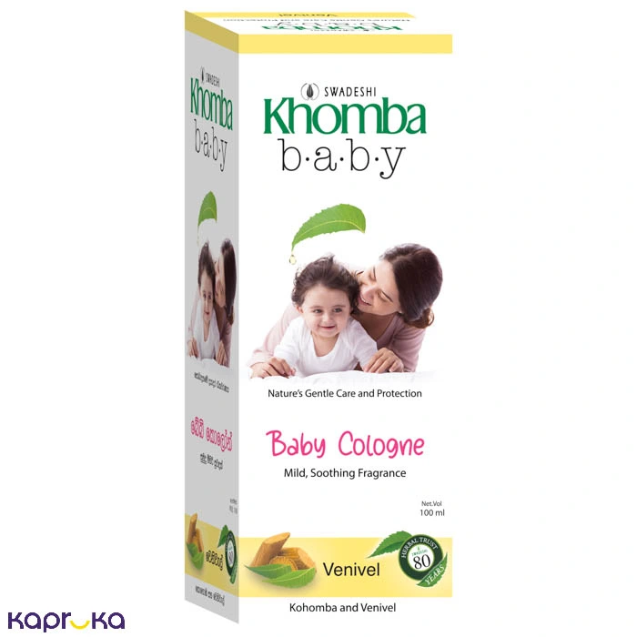 Khomba Baby Cologne Venivel is formulated with natural ingredients including venivel extract and khomba (neem) that are known for their gentle and beneficial properties for baby skin.