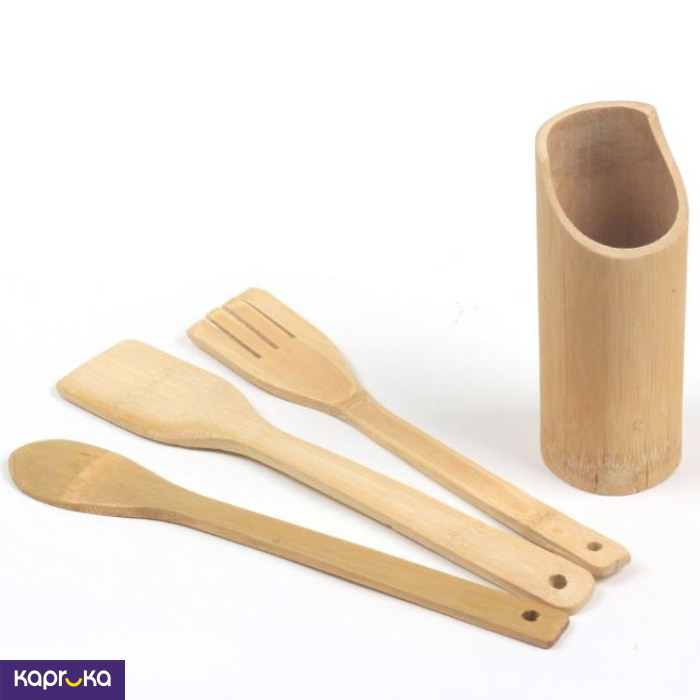 The Kitchen Master Chef Bamboo Wooden Kitchen Tool Set is made from high-quality bamboo wood, known for its durability and eco-friendliness.
