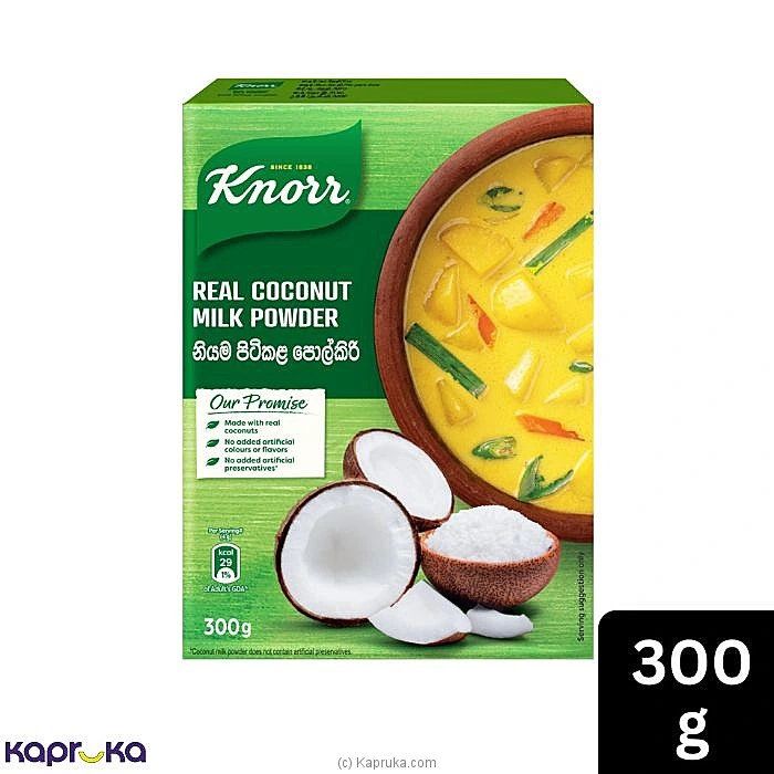Knorr Coconut Milk Powder 300g is a high-quality coconut milk powder crafted to deliver rich flavor and a smooth, creamy texture to your favorite dishes. Made from carefully selected coconuts, it dissolves easily in water to create delicious coconut milk, perfect for preparing curries, soups, desserts, and a variety of traditional and modern recipes. Its convenient powdered form allows for easy storage and long-lasting freshness, making it a practical choice for everyday cooking. Hygienically processed and securely packed, Knorr Coconut Milk Powder ensures consistent quality and authentic coconut taste in every use.
