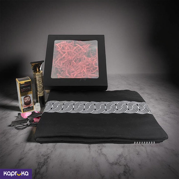The Men’s Grooming Style Gift Pack is the perfect choice for the modern gentleman. This exclusive set includes a premium dragon finish professional beard trimmer for a precise grooming experience, a nourishing beard growth oil to maintain a healthy and fuller beard, and a stylish black batik sarong with a classic white woven border for a touch of elegance. Presented in a sleek black and brown gift box with red shredded lining, this pack makes an ideal gift for birthdays, special occasions, or self-care.