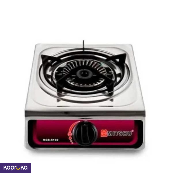 The Mitshu 1-Burner Stainless Steel stove operates using LPG (Liquefied Petroleum Gas).