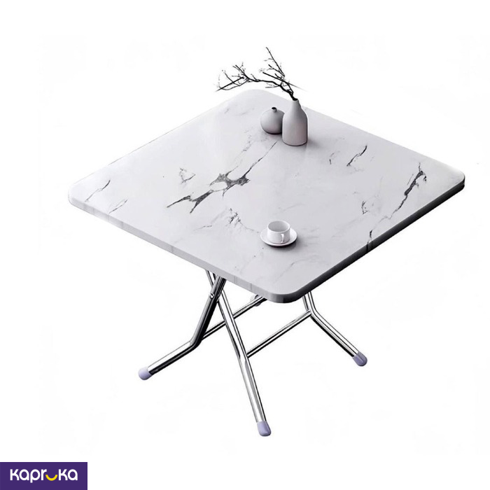 The tabletop of the Modern Foldable Marble Top Dining Table is made from a marble finish, providing a stylish and durable surface for dining.
