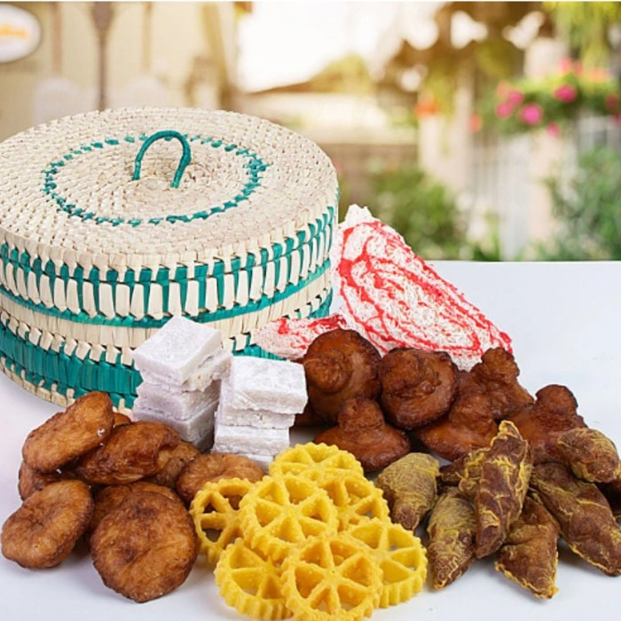 Beautifully presented in a traditional basket and this bountiful collection of sweetmeats are ideal to gift your loved once on this New Year!