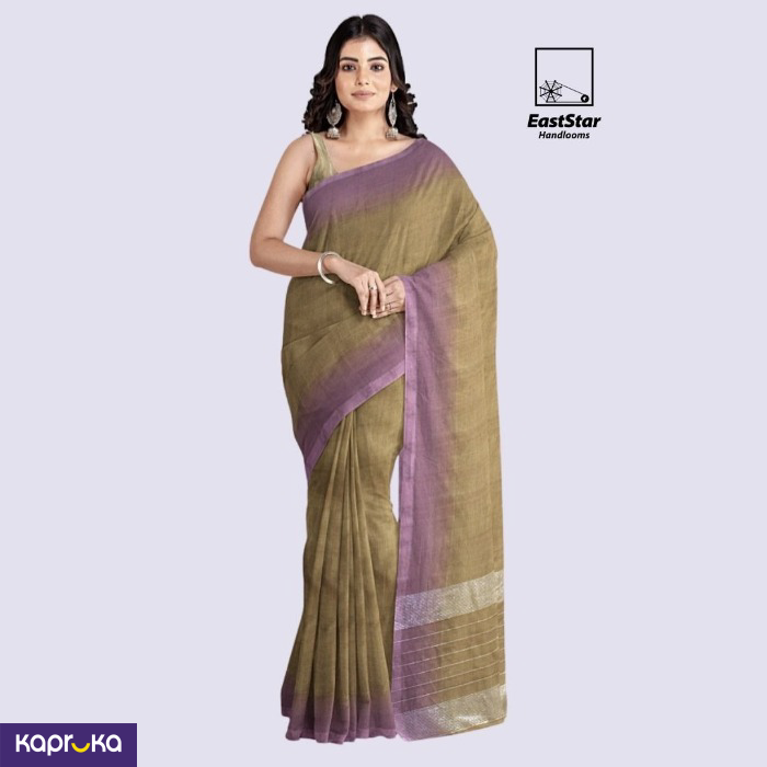 Kc3499 is an exquisite olive-moss green handloom saree highlighted by a wide lavender border and a shimmering silver striped pallu that catches the light with every step. Crafted for celebration and poise, this silver striped pallu saree is perfect as a handloom party wear saree, flowing in crisp front pleats for an effortlessly refined silhouette. If you`re seeking an olive green lavender border saree EastStar Handlooms, a Moss green handloom saree EastStar Handlooms, or a moss green border saree, this moss green handloom bordered saree delivers heritage charm with modern elegance. Buy olive green bordered saree today, order silver striped pallu saree Kc3499, and buy handloom festival wear saree to elevate weddings, receptions, and festive moments