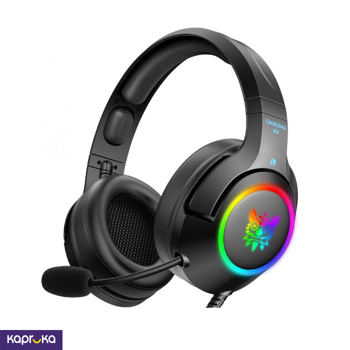 The Onikuma K9 RGB Stereo Gaming Headset features RGB lighting, stereo sound quality, a noise-canceling microphone, and comfortable ear pads suitable for long gaming sessions.