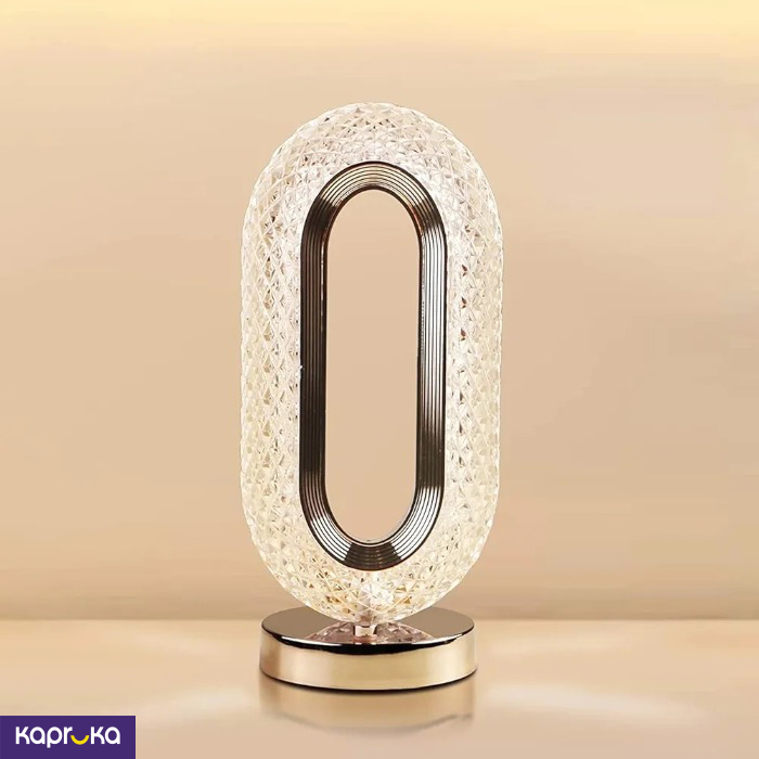The Oval Crystal Lamp LED Table Lamp uses energy-efficient LED bulbs.