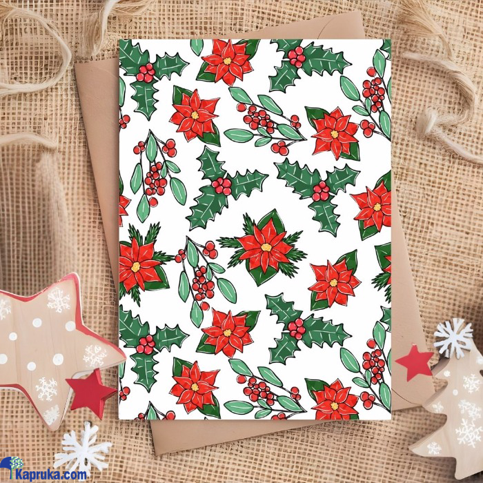 Celebrate Christmas with this beautiful greeting card featuring vibrant poinsettias and red berries. Its classic design brings warmth and joy to your holiday wishes. Available at Kapruka in Sri Lanka.