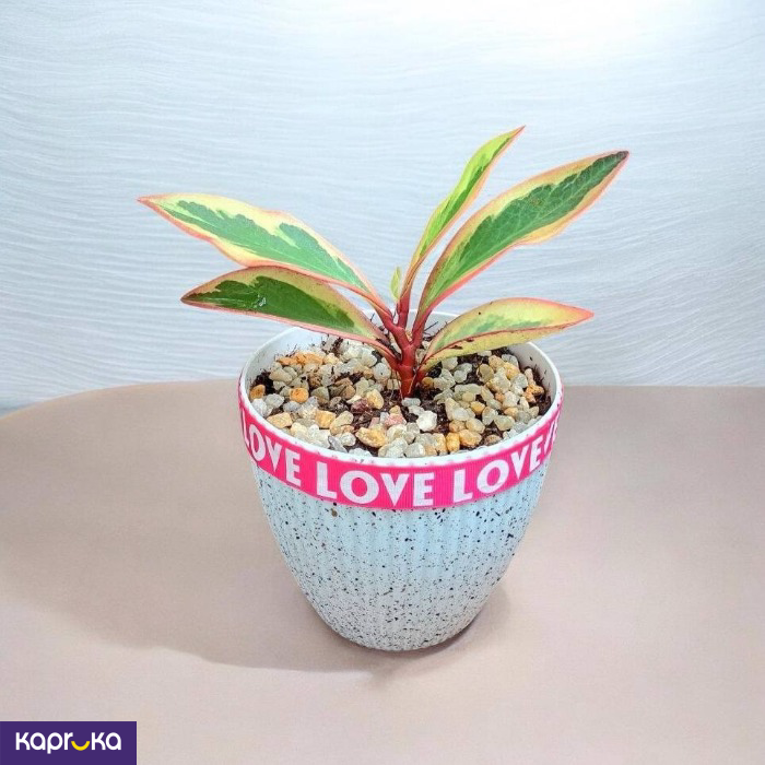Bring home the Peperomia Ginny Valentine Special, a beautiful plant with vibrant green, cream, and rosy leaves. This compact and elegant plant adds a romantic touch to your office or home. It’s easy to care for, making it perfect for beginners. Ideal as a meaningful Valentine's gift, it symbolizes warmth and lasting beauty.