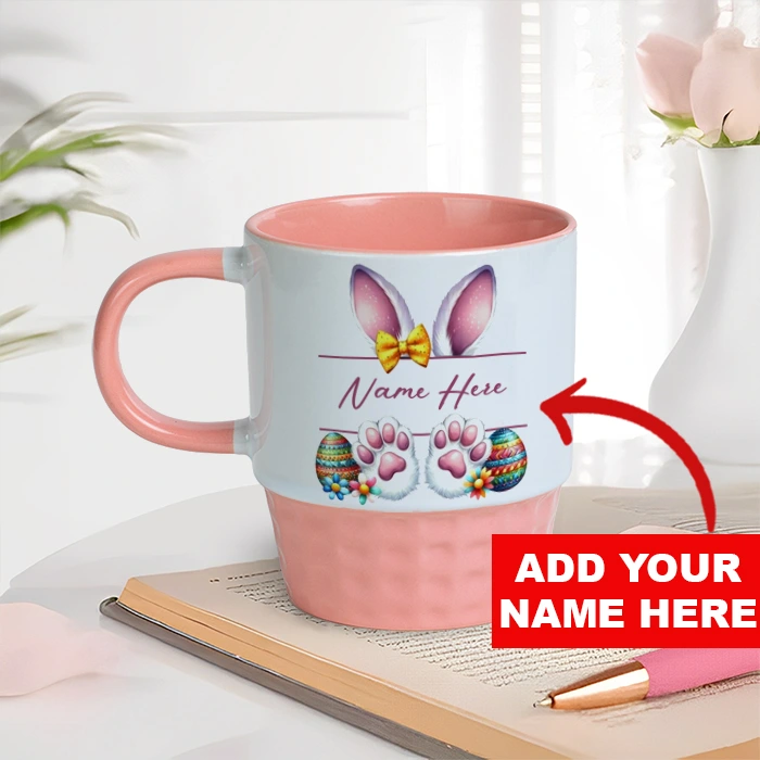 Yes, you can customize the Easter Bunny Mug with a name. Simply provide the name you wish to have printed on the mug when placing your order.