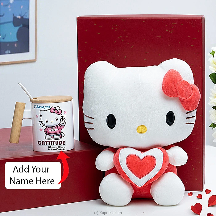 Delight the Hello Kitty fan in your life with this adorable and customizable combo. This set features a charming white ceramic mug adorned with a delightful Hello Kitty design and the playful phrase ``I have got CATTITUDE.`` The mug is made even more special with a dedicated space to ``Add Your Name Here,`` making it a truly unique and personal gift.