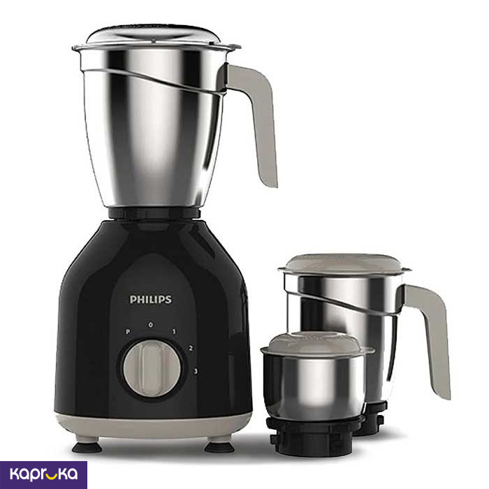 The Philips 750W Mixer Grinder comes with three jars- a main jar, a multipurpose jar, and a chutney jar, each designed for specific types of grinding tasks.