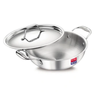 :Design: Thick Gauge Tri-Ply Body : 3 Layers Of Metals From Base To Rim, Inner Layer Is Food Grade Stainless Steel, An Aluminium Core Ensures Even Heating And Outer Layer Is Stainless Steel.