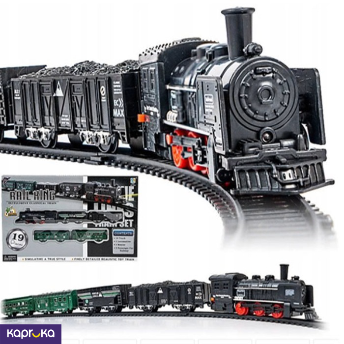All aboard the fun! The Rail King Classical Train Set is a delightful 19-piece battery-operated toy train that brings the charm of vintage locomotives right into your childs hands. Designed with classic aesthetics, this retro-style engine features realistic smoke, working lights, and authentic train sounds, creating a fully immersive playtime experience.