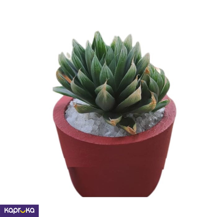 Bring a touch of greenery to your home with this Rosette Shaped Haworthia Plant in a vibrant red painted pot. Perfect for indoor settings, this succulent not only looks beautiful but also improves air quality.